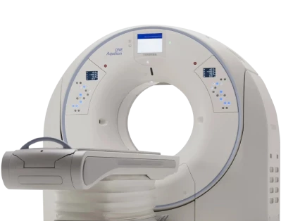 - Aquilion Prime SP – мультиспиральный компьютерный томограф с искусственным интеллектом, и пожалуй не имеющий аналогов в Нижнем Новгороде и Приволжском федеральном округе! Аппарат разработан на базе премиальных технологий TOSHIBA и открывает новые в диагностике. Помимо стандартных исследований, компьютерный томограф позволяет проводить исследования сердца. КТ сканирование в кардиологии с технологией SURE Cardio, которая адаптирует параметры сканирования и экспозиции к каждому пациенту в режиме реального времени, позволяя проводить спиральное сканирование сердца с низкой лучевой нагрузкой, исследовать по миллиметрам каждый сосуд и даже кровообращение в нем! Благодаря инновационным технологиям воздействие излучения на организм при проведении компьютерной томографии – минимально